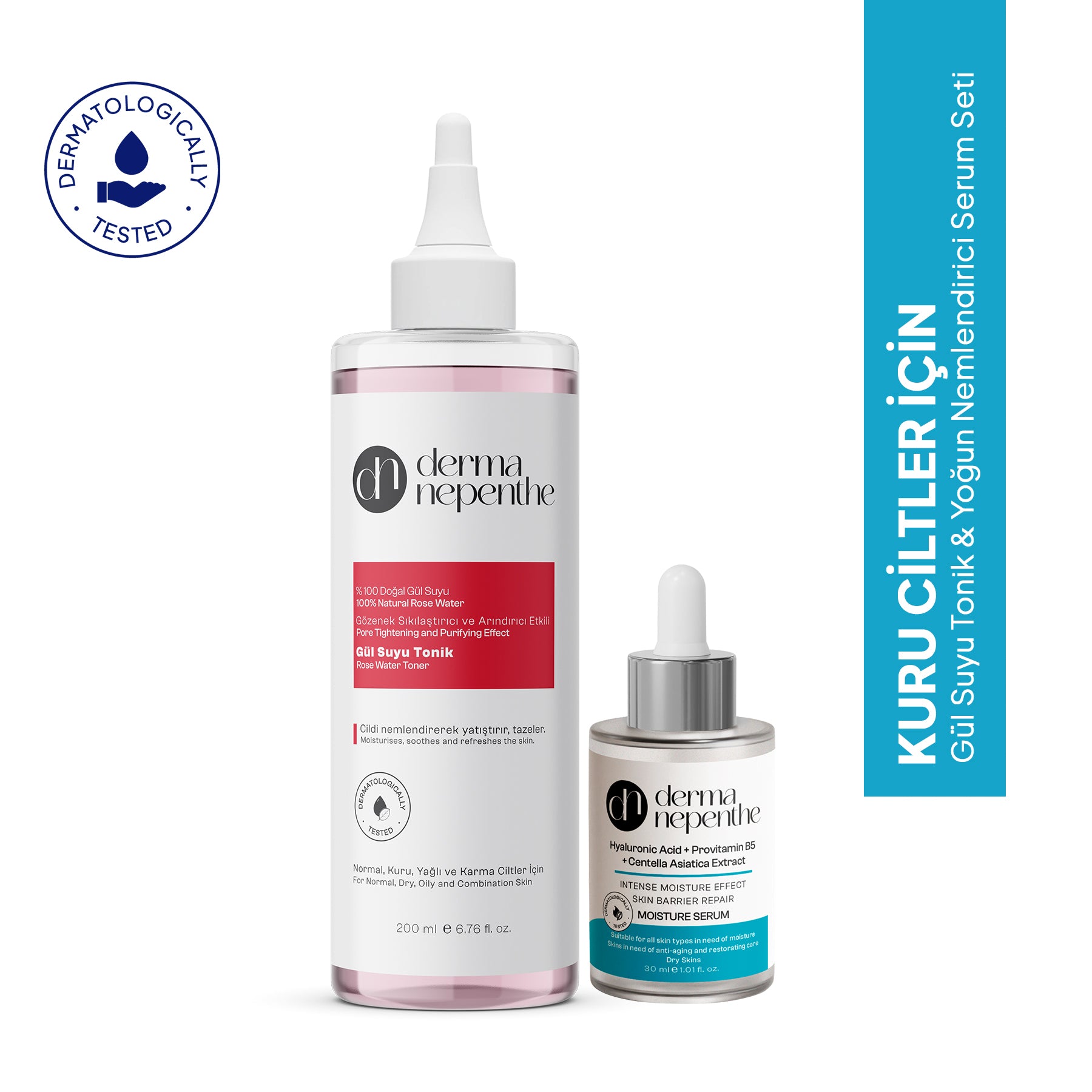 Kuru Ciltler İçin Canlandırıcı İkili: Gül Suyu Tonik & Yoğun Nemlendirici Serum Seti